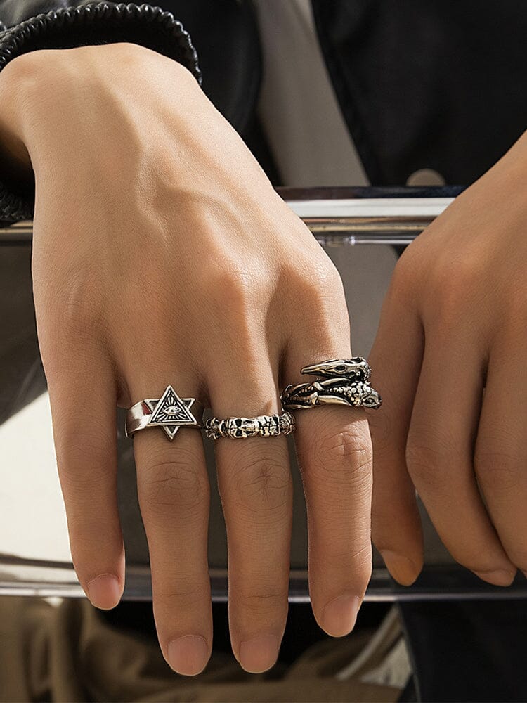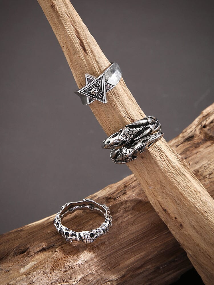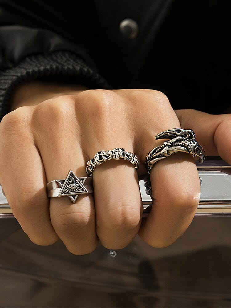 Set di 3 Anelli Gotici con Design di Occhio Maligno