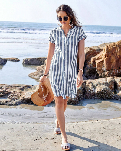 Martine™ | Elegante abito camicia a righe