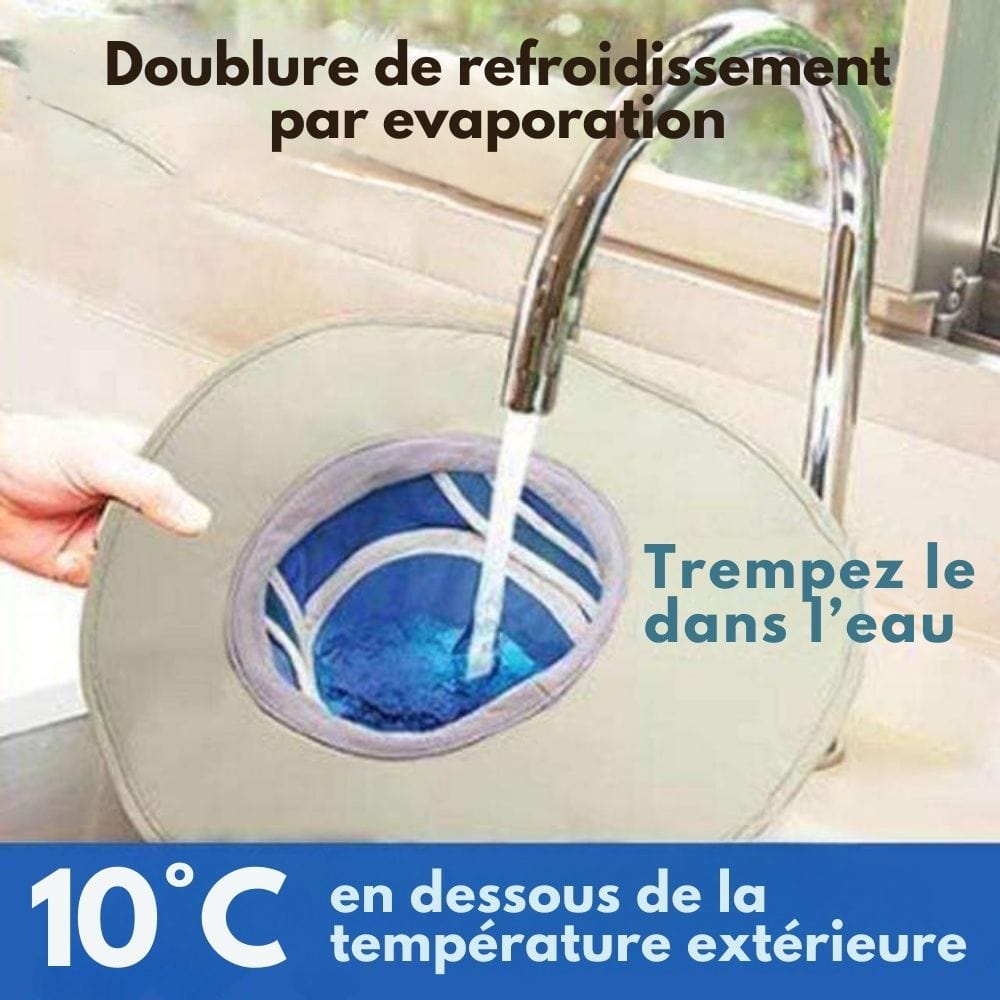 Rimanete freschi anche quando il sole picchia forte! Questo cappello è progettato per affrontare il caldo estivo, proteggendo la vostra testa dai raggi solari. Grazie al suo tessuto riflettente e al sistema di raffreddamento per evaporazione, vi garantirà ore di freschezza. Basta inumidire l'interno per un effetto rinfrescante senza sensazioni di umidità sgradevole.
