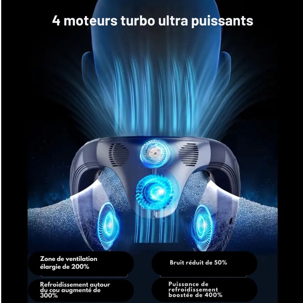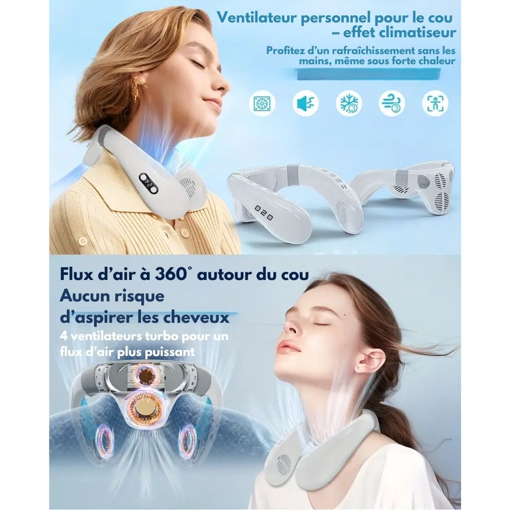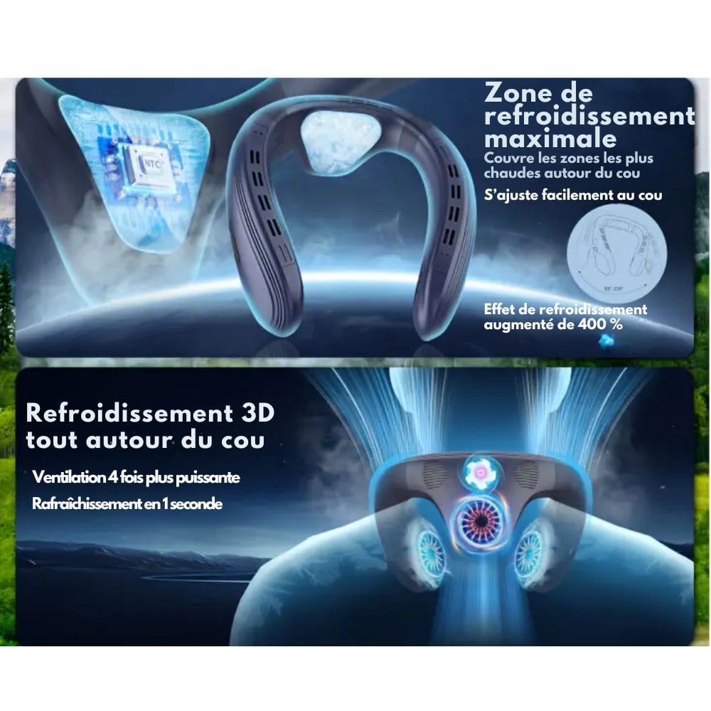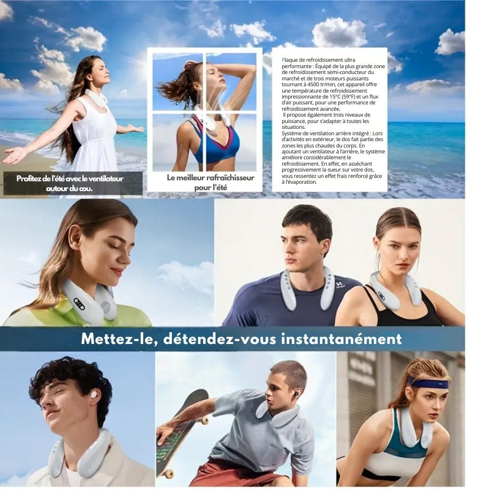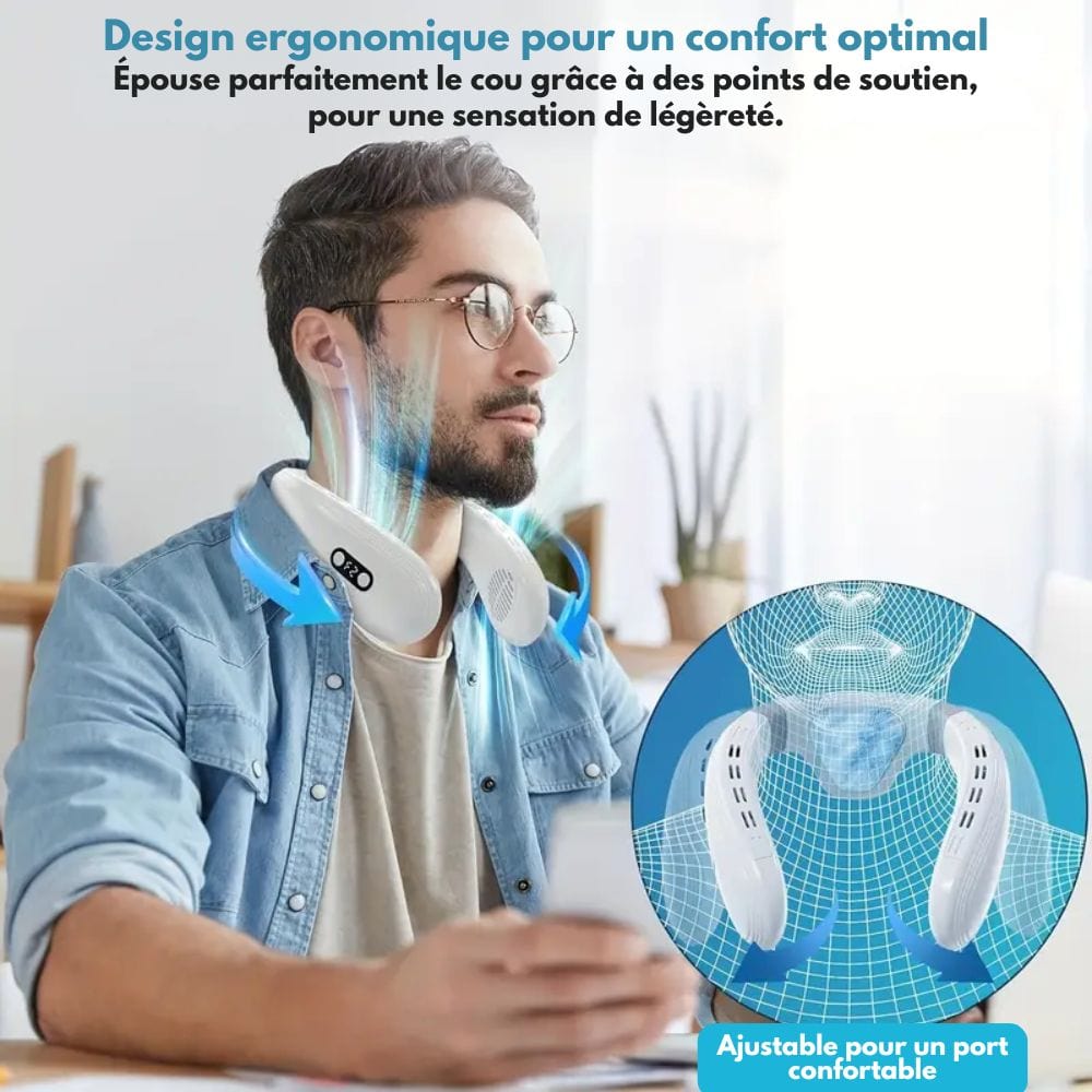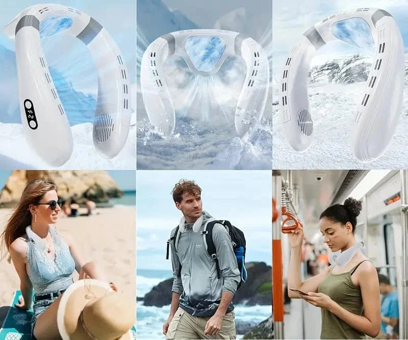Dite addio ai colpi di calore! Grazie al sistema di raffreddamento semiconduttore e ai 4 ventilatori turbo, questo ventilatore da collo offre freschezza immediata, coprendo l'intero collo e diffondendo aria ghiacciata nelle zone chiave come nuca, guance e mento, anche a 40°C.